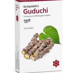 Add to cart Price: ₹281.00Dr.Vasishth’s Guduchi Ghan Tablet is a Single‐drug ayurvedic medicine that contains ghan of Guduchi (Tinospora cordifolia) stem.