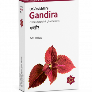 Add to cart Price: ₹281.00Gandira Ghan Tablet is a Single‐drug ayurvedic medicine that contains ghan of the root of Gandira (Coleus forskohlii).