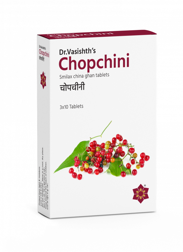At Dr. Vasishth’s AyuRemedies Company, we have harnessed the potent benefits of Smilax China in our Chopchini Ghan Tablet. This product is specially formulated to provide maximum efficacy and convenience for patients seeking natural solutions to their health concerns.